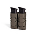 The High Speed Gear Gen 2 Double Pistol TACO® is designed for ultimate efficiency and versatility, catering to modern tactical needs. This pouch is capable of securely holding two pistol magazines or similarly sized items like flashlights and multitools. Constructed with laser-cut nylon laminate over a woven thermoplastic core, it emerges as a lightweight option, being up to 20% lighter than its predecessor. The pouch's adaptive mounting features include 1/2 inch interval MOLLE for seamless integration with MOLLE systems or belts. Updated molded sides have contoured channels to ease magazine insertion while maintaining shock cord retention. Additionally, it's compatible with various over-top retention accessories for customizable setups, responding to specific user preferences.