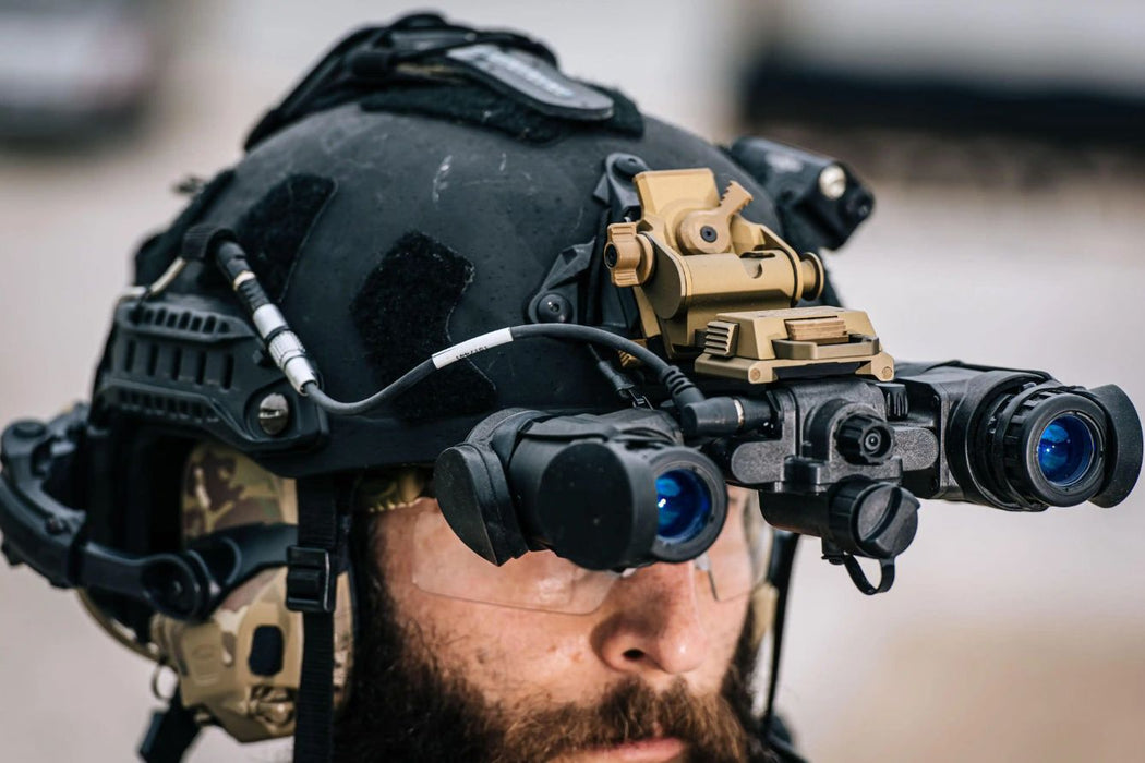 - Galvion Caiman TL: A streamlined, skeletonized helmet system designed for agility and comfort. Its rigid construction ensures a secure and wobble-free attachment point for the night vision device during dynamic movements.