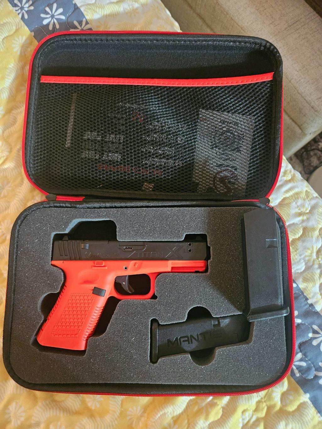 - Included in Box: TitanX pistol, custom EVA carry case, 2 weighted magazines, and USB-C charging cable.