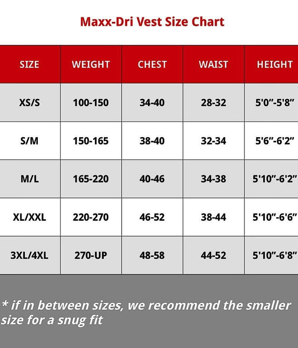 - NEW Stay-put Grip Technology prevents your Maxx-Dri vest from shifting