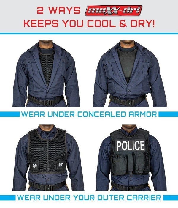 The Maxx-Dri Vest 3.0 creates a FULL 360-degree separation (space) between your body and your armor vest, allowing heat and moisture (perspiration) to escape. This keeps you drier and cooler in the heat, warmer and drier in the cold, MORE FOCUSED AND SAFER.