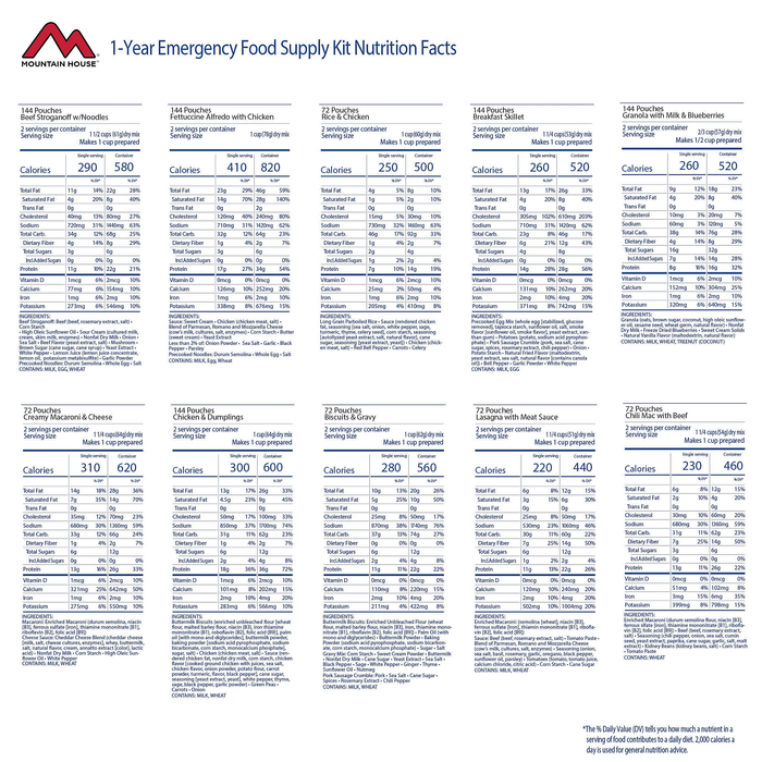 - The Mountain House 1-Year Emergency Food Supply is designed to provide nutritious and delicious meals for a full year, ensuring you’re prepared for unexpected situations.