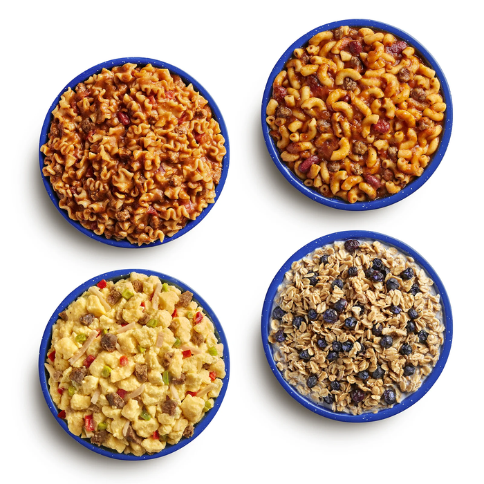 - Variety of Meals: Includes favorites like Fettuccine Alfredo with Chicken, Beef Stroganoff, Breakfast Skillet, and Granola with Blueberries.