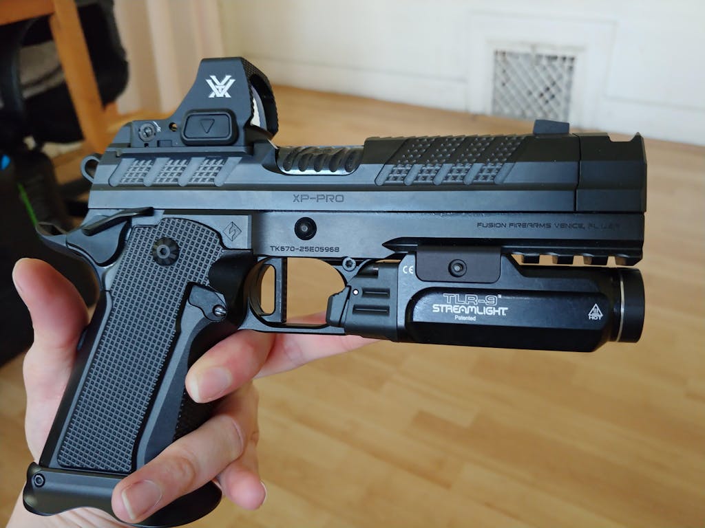 - The TLR-9 features the latest in LED technology, delivering a powerful 1000-lumen beam with extensive range and good peripheral coverage from two CR123 lithium batteries.
